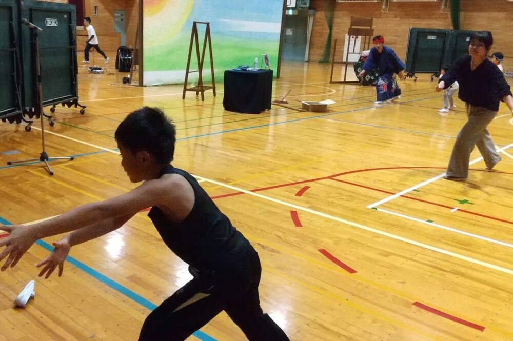 終演後は公演の後は「ソーラン節」のワークショップ!「南中ソーラン」を踊った、観たことがある青年や子どもたちもしっかり踊ってくれ、約20名の皆さんと楽しく「ソーラン節」を踊りました。