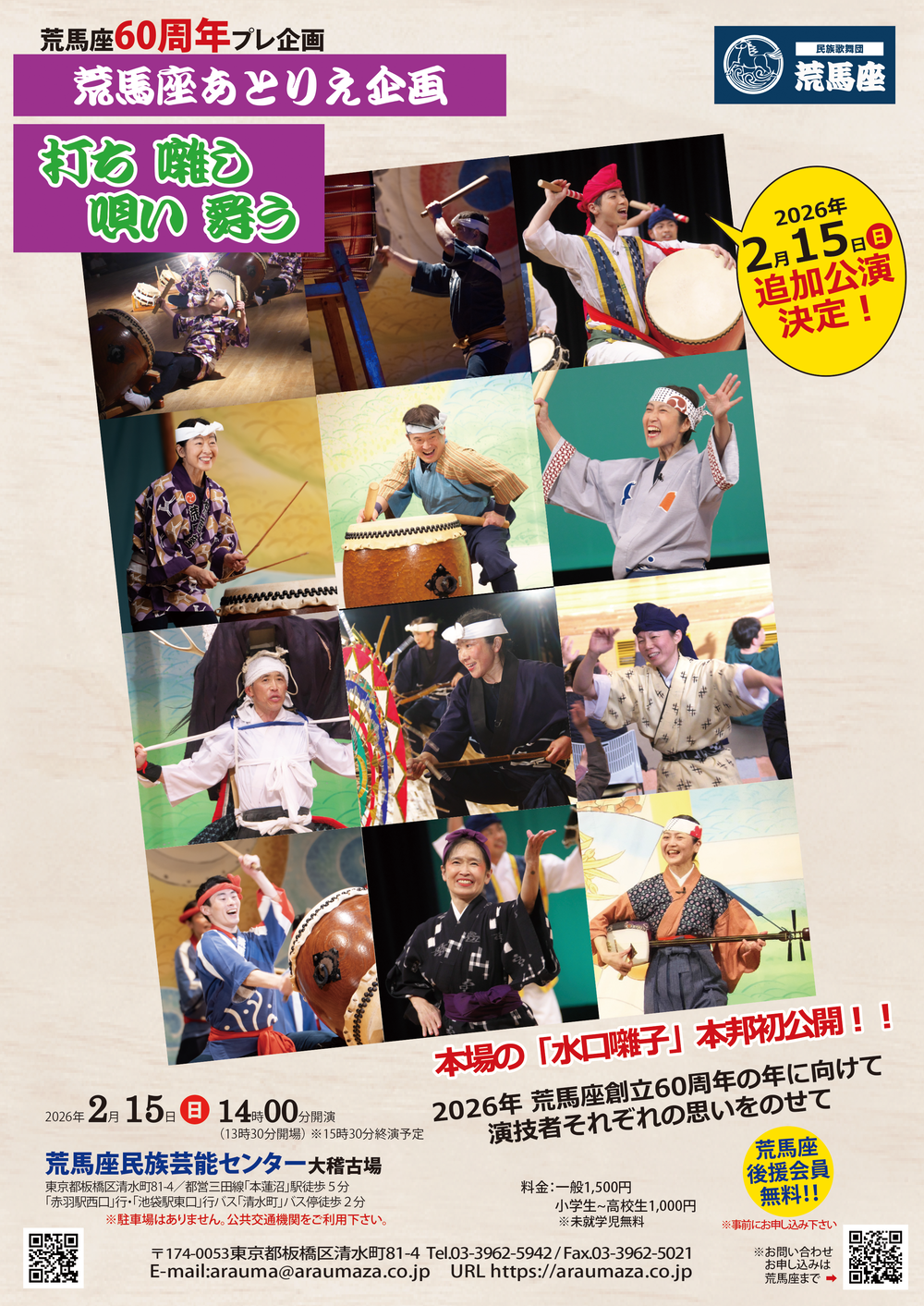 | 上演時間 | 約70分 ※「体験ワークショップ」あり(民舞など、詳細は応相談) |